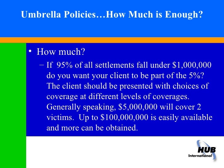 How much insurance is enough? Not that many years ago, Commercial Umbrella coverage was a specialty product for insureds of The amount of umbrella insurance that is right for you depends on a variety of factors. your type of business, ... Read More